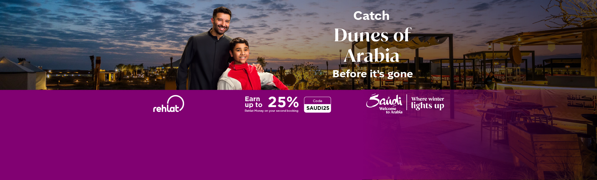 Book your Saudi flights and earn up to 25% Rehlat Money.