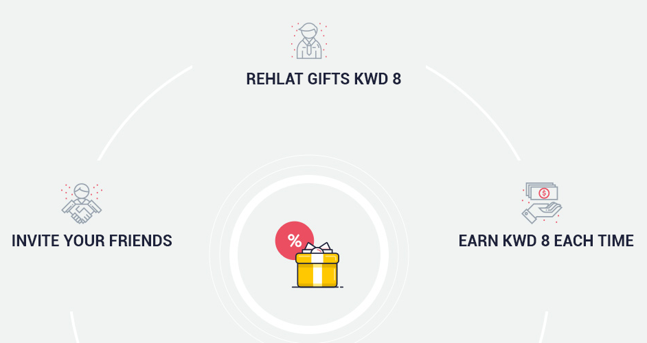 Invite Friends: Share your referral link, invite your friends to join Rehlat and earn Karam Cash when they book with Rehlat. They earn Karam Cash when they sign up.